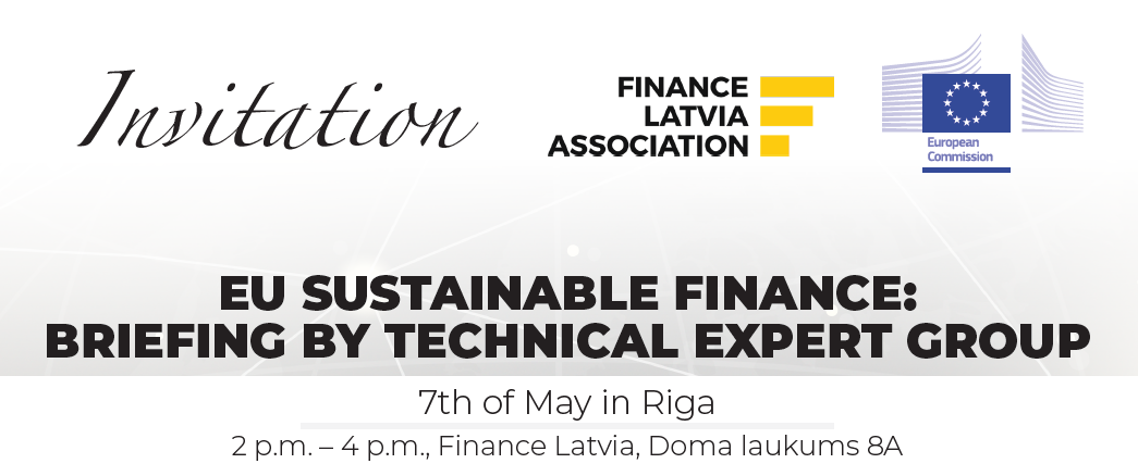 Finance Latvia Association in cooperation with the European Commission invites you to participate in the industry event on some technical elements of the implementation of the European Union sustainable finance regulation in Latvia “EU Sustainable Finance: Briefing by Technical Expert Group”. The event will take place in Finance Latvia, Doma laukums 8A, 4th floor on May 7.